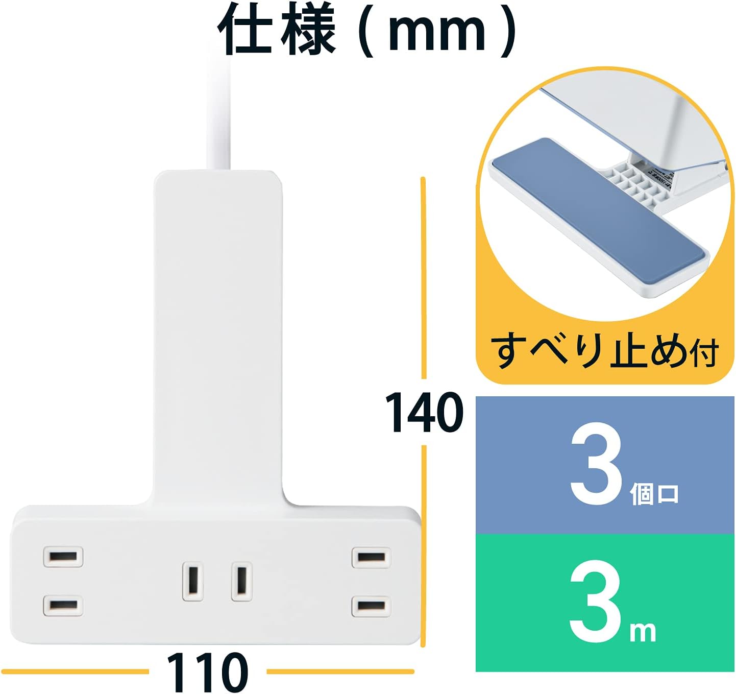 ELECOM超人氣便利插座夾 電源插座 延長線 電路安全裝置帶防塵快門 日本直送